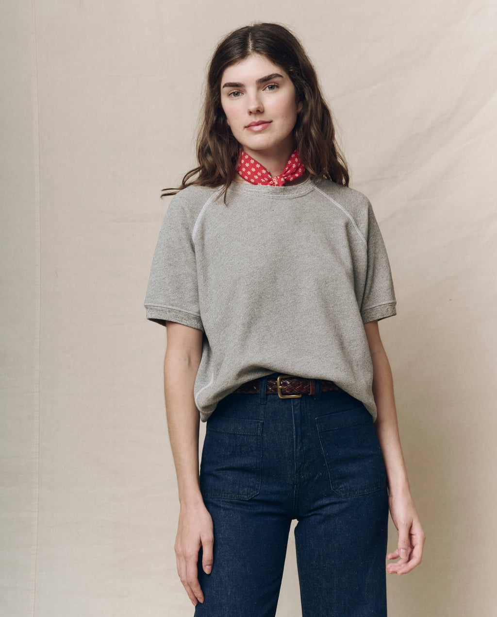The Short Sleeve Sweatshirt. is a perfect transition piece for Spring.?Designed with a slouchy and?easy?fit with cropped short sleeves, a classic crew neck, raglan sleeves,?and?rib?finishings that pairs easily with shorts, sweats, or your favorite jeans.