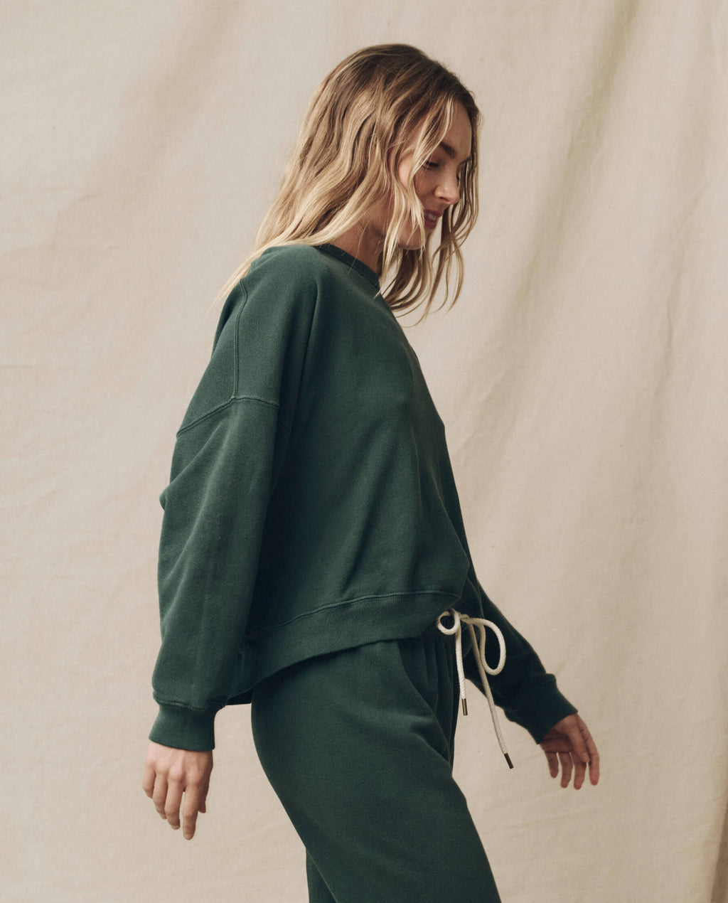 A relaxed fit with a dropped shoulder, cropped body length and clean cuffs with no distressing make this piece feel like the perfect deadstock sweatshirt flea market find. Authentic vintage details like a half moon in the back collar add extra character. Handcrafted locally in Los Angeles,?our process ensures beauty and uniqueness¡ªno two pieces are alike.